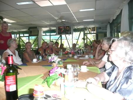 Durch den Regen wächst das Gras wie verrückt. Kaum hatte ich gemäht und nun heute wieder angefangen. Aber ein Trost, es erhält jung und schlank, ich hoffe es wenigstens. Aber ich wollte Euch ja wieder ein paar Bilder vom Weiber Damentreffen zeigen. Es waren wieder einige neue Gesichter da. Ich habe den Eindruck, daß Deutschland und die Schweiz langsam leer werden. So kam insgesamt eine Runde mit ca.3o Damen zusammen. Deswegen mußte ich auch vom Tisch unbedingt ein Foto machen, wie es ausgesehen hat wo alle gegangen sind. Erich aus Ulm ist ein neuer Fleischer und hat bestellte Wurstpakete verteilt und ich habe mal fast alles durchprobiert und für gut befunden. Ansonsten kann ich Euch ja nicht alles schreiben was so gequatscht wurde. Auf jeden Fall von Weihnachten, Stollen usw. Vorallem wünschen sie Euch Allen ein schönes, geruhsames Weihnachtsfest mit viel Schnee. Aber wir sind nicht traurig keinen Schnee zu haben. Trotzdem gibt es leckeren Stollen, Plätzchen und bei diesem oder jenen Gänsebraten. Im Schweisse meines Angesichts muß ich jetzt aufhören und unter die Dusche. Fehler mache ich später weg oder auch nicht !!!!Letztes Damentreffen 2010