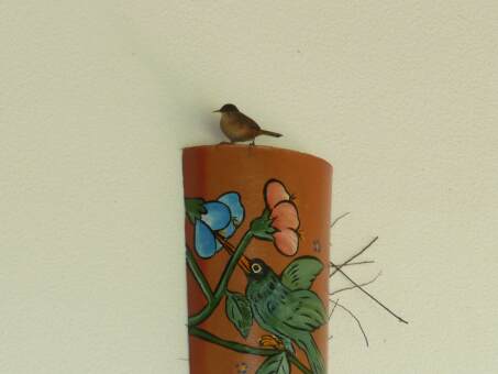 Letztes Jahr war ja der Bierhumpen dran und nun ist es die Wandlampefür die Piepser um für ihre Kinder einer Nest zu bauen. Schließlich ist Frühling und da sind die Frühlingsgefühle da, bestimmt nicht nur bei den Tieren. Ein Glück, daß wir mehrere Lampen auf der Terrasse haben.