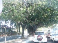 Solche Bäume stehen in Asuncion mitten auf den Strassen trotz hohem Autoverkehr.